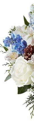 Make someone smile today with the Beauty In Blue Flower Bouquet. A fabulous gift for birthdays, wedding anniversaries, get well wishes, house-warmings, and corporate events, this versatile floral arrangement complements every occasion. With 4 white roses, white alstroemeria, white gypsophila, bright blue delphinium, and a sprinkling of seasonal green ferns, it is a striking display of natural beauty.