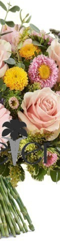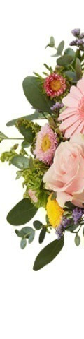 Inspired by wild-growing blooms you might find while walking in the English countryside, our Country Stroll Bouquet remains a popular choice for Mother's Day and birthday celebrations. You'll find pink roses, pink gerbera, pink and yellow mini chrysanthemums, and yellow Limonium beautifully hand-tied in a vase or bouquet wrapping.